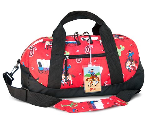 Olive Kids Ride Ôem Duffel Bag is perfect for young buckaroos! This rootinÕ tootinÕ cowboy themed duffelÕs roomy interior and zippered pocket are ideal for little buckaroos to carry around their books, art supplies, toys, snacks and more! Our duffel bags are specially sized for preschoolers (ages 3+), and feature a detachable padded shoulder strap, 2 handles, and a simple zipper closure pocket. These dazzling duffel bags are perfect for school, camping trips, or weekends at Grandma's house. Best of all, each duffel bag comes with a FREE coordinating personalized name tag, with space on the back for writing contact information with a sharpie (not included).